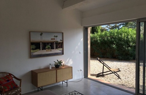 a design house by known French architect, with a particular artistic taste, 5 comfortable rooms with sperate bathrooms. equipped kitchen, towels, washing machines and dryers.