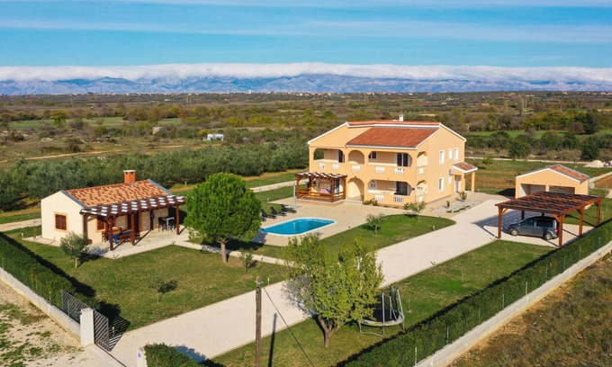 *** Only the ground floor is rented ***Looking for a quiet time in a picturesque natural location? Our hidden beauty gives you exactly that. Villa Levatinka is located in a unique location that offers complete peace for your body and soul. This beauty is sourranded with pure untouched nature, olives, animals and flowers. Breathtaking sunset for which Zadar is known for is waiting for you :)Villa Levatinka consists of 3 bedrooms, 2 bathrooms and toilet, kitchen and living room. It is air conditioned, has WiFi, parking garage and provides everything for an enjoyable holiday on a perfect location. Exterior is very spacious with large swimming pool surrounded by sun loungers. In the yard is also covered barbecue with dining table where you can enjoy preparing traditional Dalmatian specialties with your friends or family. This villa is decorated to provide maximum comfort and to make your vacation as relaxing as possible. Stay at Villa Levatinka and spend a relaxing holiday in nature.