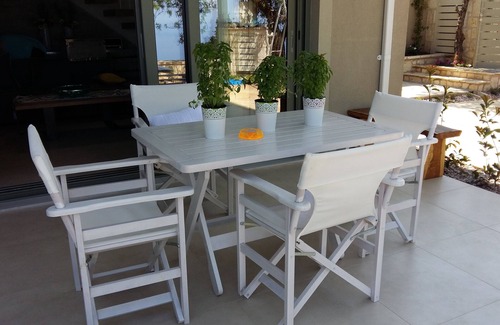 With love and enthusiasm, we created an intimate and welcoming space of 105 sq.m. with modern architecture, while maintaining harmony with the green surroundings. The villa is split on two levels and can accommodate up to six adults, ensuring the most comfortable and relaxing holidays for you, your family and your friends.