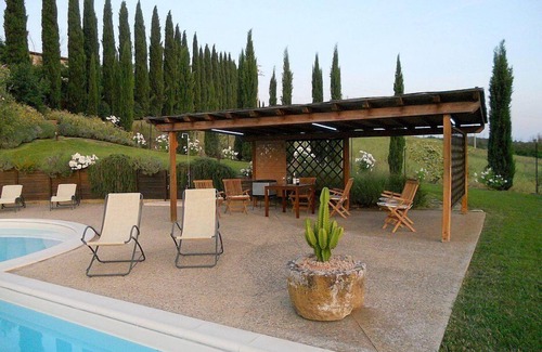 The swimming pool is 8 meters (26 feet) large by 16 meters (52 feet) long, 1.4 meters (4.6 feet) deep. The area is equipped with tables, chairs, sun loungers, a gazebo and an external shower. From the swimming pool you will enjoy an enchanting view of the Senesi hills. The pool is open from mid-May until the end of September.