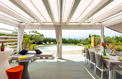 Villa Lisa is a house of great design, light and airy, set in the hills of Rimini and just ten minutes by car from the sea. Indoors, the villa is characterized by a modern, linear style, with all mod cons and technologically very advanced. It is a property that will allow its guests to relax, after a nice day at the beach, in the wellness area of the villa equipped with whirlpool tub, chromotherapy and a wet bar. It is also ideal for those who prefer to spend their day at home in total relaxation, enjoying the pool with its view over the surrounding hills or reading a good book in the shade of the large gazebo in front of the pool.