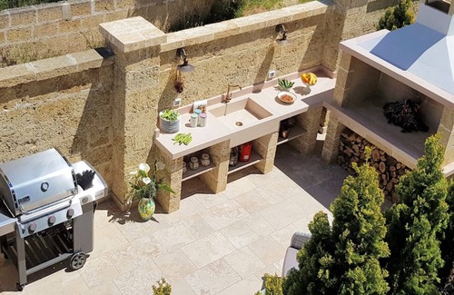 large outdoor kitchen, entirely made of natural stone (Carparo and