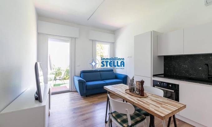 Cozy three-room apartment located on the ground floor of a quiet residential building, in the heart of the Jesolo pine forest about 500 meters from the sea.