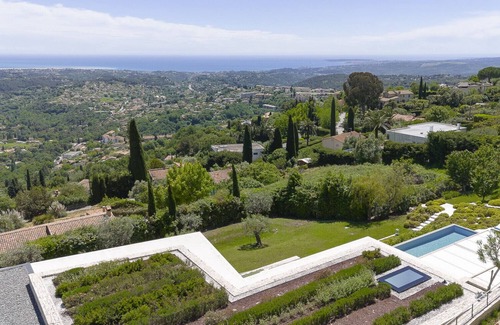 This architecturally striking villa on the Côte d’Azur blends intelligent modern design with sweeping Mediterranean views, featuring four luxurious bedroom suites and seamless indoor-outdoor flow to expansive terraces and a heated infinity pool. With a lift, private spa, cinema room, and beautifully landscaped gardens, secure parking, this serene retreat offers the ultimate in sophistication, privacy and Riviera living. 5 minutes drive to the boulangerie; 30 minutes from Nice Airport.