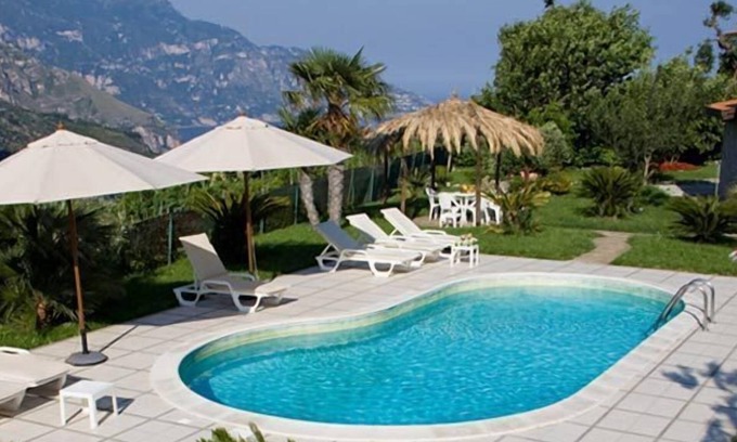 It's a large property that includes a nice swimming pool with partial view on Amalfi coast and a really nice and well kept garden.
