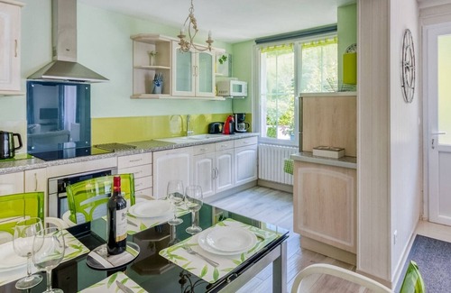 Away from the crowds and noise, this vacation home is in the charming town of Tulle. It is the ideal holiday spot to get away from the world with the family. The villa has a beautiful garden in the middle of green surroundings. The grocery store is a few minutes by car from the house. In addition, 5 minutes by car (2 km) you will find restaurants serving regional specialties. During leisure, you can relax in the living room watching a TV show or movies. A perfectly equipped kitchen is available to prepare tasty meals.Brive-Souillac Airport is 47.6 km away.