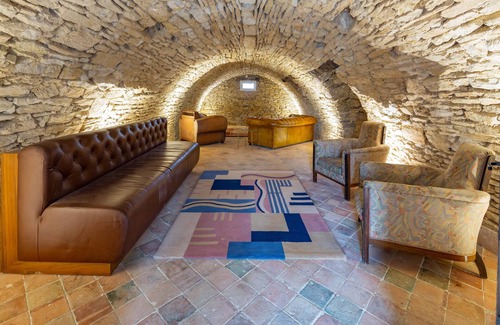 And between these two components, a remarkable vaulted cellar that acts as a game room and home theater.