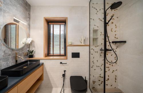 Providing a garden, Villa Mare Halkidiki provides accommodations in Vourvourou. This property offers access to a balcony, free private parking, and free Wifi. During your stay at this villa, you can use an outdoor swimming pool, as well as a selection of a fitness room and a shared kitchen. Featuring a terrace and sea views, the spacious villa includes 5 bedrooms, a living room, flat-screen TV, an equipped kitchen, and 5 bathrooms with a bidet and a shower. Featuring air conditioning, this unit has a dressing room and a fireplace. The property has an outdoor dining area. There is an on-site bar. For guests with children, the villa features indoor and outdoor play areas. Vourvourou Beach is a 18-minute walk from Villa Mare Halkidiki. Thessaloniki Airport is 62 miles from the property.