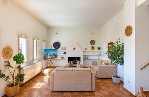 Providing a garden, Villa Maria Syros provides accommodations in Posidhonía. This property offers access to a terrace, free private parking, and free Wifi. Staff on site can arrange a shuttle service. The air-conditioned apartment consists of 3 bedrooms, a living room, a fully equipped kitchen with a dishwasher and a coffee machine, and 2 bathrooms with a shower and slippers. Towels and bed linen are provided in the apartment. There's also a seating area and a fireplace. There is an on-site coffee shop. Ampela Beach is a 17-minute walk from the apartment, while Saint Nicholas Church is 7 miles from the property. Syros Island National Airport is 5.6 miles away, and the property offers a paid airport shuttle service.