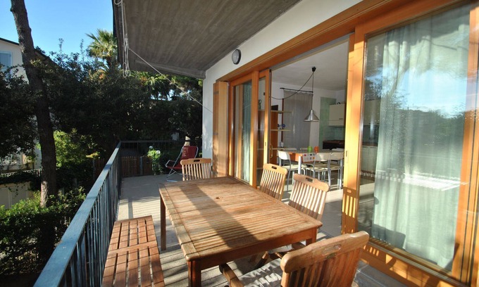 Apartment for 4-6 people, on the first floor with a spacious terrace, where you can have dinner and enjoy relax and sun. Large living room with kitchenette, double sofa bed, two bedrooms, one double and one with bunk bed and bathroom with shower.