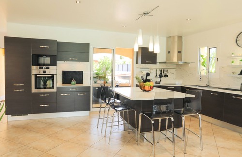 Very bright villa composed of 3 air-conditioned bedrooms, two with beds 160x200 and a room with twin beds.