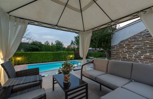 This villa Mario is located in Pazin of the outskirts of small, secluded village Šestani. The gazebo is placed perfectly to overlook the pool and the wonderful and pure nature. It will give you a unique feeling of pleasure, peace calmness and comfort.