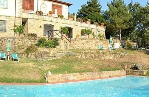 Villa Mariolina Grande is a characteristic and welcoming two-story age-old farm house located in an isolated position, on the slopes of a hill which is covered with olive groves. It sleeps 34 people. From Villa Mariolina Grande you will enjoy an enchanting view of the Valdarno (Arno Valley). Villa Mariolina Grande is 450 square meters (4850 square feet). It features a private swimming pool, a spacious private terrace, a private patio, a private garden, air conditioning (please read description below to check in which rooms the units are installed), winter heating and WI-FI Internet access.