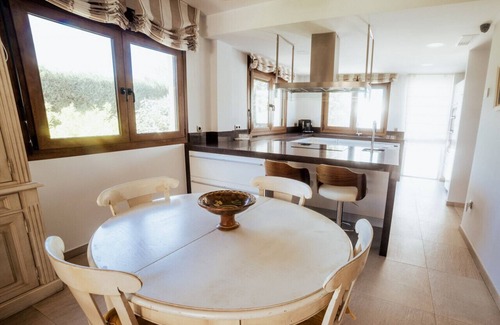 Su cocina amplia y completamente equipada te permitirá preparar deliciosas comidas y sorprender a tus seres queridos. Podrás disfrutar de la comida o un aperitivo en la terraza exterior, el lugar perfecto para contemplar las vistas y disfrutar de momentos inolvidables.