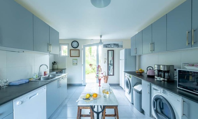 The kitchen is equipped with an oven, a stovetop, and a refrigerator, as well as a microwave and a toaster. And thanks to the washer and dryer, you'll even be able to travel light. Other amenities include heating and a dining table.