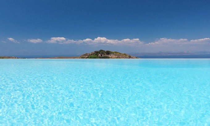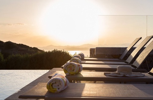 Enjoy island life to the fullest in the villa’s beautifully designed outdoor areas: A large, paved terrace shaded by pergolas, ideal for al fresco dining for 12 guests. A lower-level patio with a 4.5 x 10-meter infinity swimming pool ( that can be heated with extra cost), outdoor shower, Petanque court,BBQ area, table tennis,sun loungers, and a built-in sofa for ultimate relaxation.