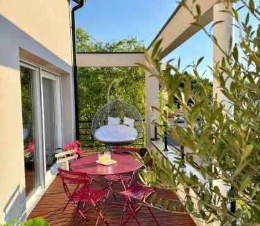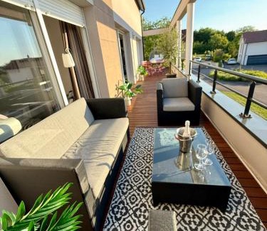 Villa Metz / Amnéville 200m2 is located in Vigy, just 11 miles from Centre Pompidou-Metz and 11 miles from Metz Train Station. This property offers access to a patio, free private parking, and free Wifi. Outdoor seating is also available at the villa. Providing access to a balcony with city views, the spacious villa consists of 5 bedrooms. Featuring a terrace with garden views, this villa also comes with a satellite flat-screen TV, a well-equipped kitchen with a dishwasher, an oven, and a microwave, as well as 2 bathrooms with a walk-in shower and a hair dryer. For added privacy, the accommodation has a private entrance and soundproofing. Guests at Villa Metz / Amnéville 200m2 can enjoy hiking nearby, or make the most of the garden. Parc des Expositions de Metz is 13 miles from the accommodation, while Thionville Train Station is 18 miles from the property. Metz-Nancy-Lorraine Airport is 20 miles away.