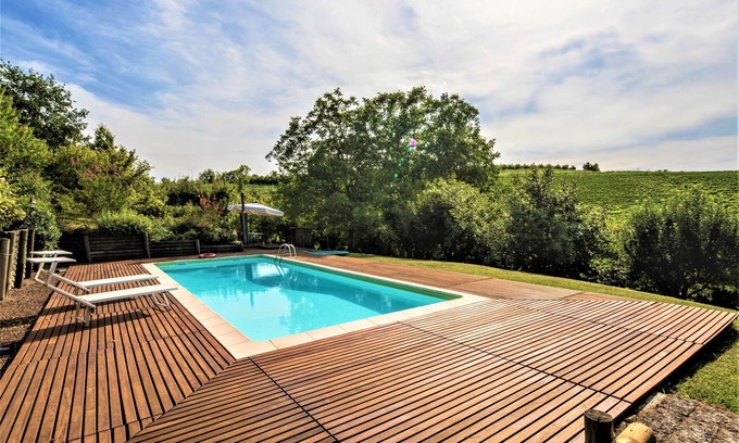 Villa Mezzaluna with private pool, A/C, Wi-fi on the Langhe hills, 5km from Alba has 4 Bedrooms , 4 Bathrooms, and max occupancy of 10 people. The minimum rental for this property is 1 nights, but this can change depending on the season you plan on staying. Previous guests have given good rated it, and VRBO labeled it a top-rated House because of the excellent services rendered by the owner or manager of this House, and has consistently provided great experiences for their guests. Most families or guests that use it recommend it to their friends and some of them are repeat guests. House has a friendly neighborhood, and the Scaparone has interesting places to visit. If you want to learn more about the House in Scaparone, such as places to visit and things to do nearby, you can check below to learn more.