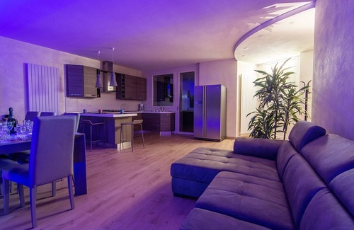 In the fantastic town of Olgiasca, on Lake Como, stands Villa Michelangelo, a modern jewel, full of style and comfort, capable of guaranteeing the customer an unforgettable holiday. You will be able to admire the most beautiful view of Lake Como. Unique in its kind, the splendid panoramic position allows you to reach the mountains, the lake and the center of Colico in just a few minutes. The Villa is independent and fenced, with a surface area of over 2000 m2, and is positioned on two floors, with 4 bedrooms and three bathrooms. Ideal for hosting groups or large families, giving the opportunity to spend time all together, in the vast spaces that the property offers, all surrounded by a green park full of flowers and plants typical of our lake. The upper floor is characterized by a large open space lounge, with a modern kitchen complete with all the latest generation appliances. A fabulous extra-large sofa allows you to enjoy the fantastic view of the lake from the panoramic window, with plays of light, which in the evening hours will make the view unique. A large table overlooks the panoramic window and will allow the whole group to spend unforgettable moments, lunches and dinners. A 65" multi-language Ultra HD 4K smartTV will complete your entertainment. The two bedrooms are respectively one double and one triple with single beds, with memory comfort mattresses. Bathroom complete with shower cubicle with chromotherapy. An illuminated marble staircase leads to the lower floor, where we find a double bedroom, two bathrooms, a triple bedroom and the laundry room. In the fourth bedroom there is a double bed and a single bed, with an independent internal bathroom, for those who prefer maximum privacy. A cellar with an exposed stone wall can give life to romantic candlelit dinners. Outside, the villa is equipped with a gazebo with exposed wood, where it will be possible to spend fantastic evenings, cheered by the view of the lake and the lake breeze. For your entertainment, five-a-side football and table tennis are at your disposal. At your disposal are the fiber wi-fi service and independent secure parking inside the villa for 3 cars.