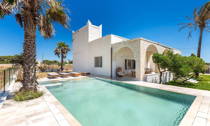 Best-rates for the Campomarino di Maruggio villa starts from $1,132 per night with includes Parking, Private Pool, Accessibility, Security/Safety, Laundry, View, Ocean View, TV, Balcony/Terrace, Wellness Facilities, Fireplace/Heating, Barbecue/Outdoor Cooking, Internet, Kitchen, Air Conditioner, Pet Friendly, Pool, Bedding/Linens, Child Friendly with all other amenities. Perfect for Weddings is committed to ensuring every guest experiences a comfortable and extraordinary stay, whether planning a romantic getaway, a honeymoon, a pet-friendly stay, or celebrating with the entire wedding party.