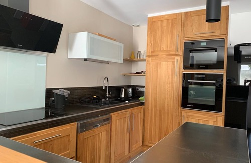 This 3-bedroom, 2-bathroom rental features a living room, a BBQ grill, air conditioning, and a desk. Bathroom amenities include a hair dryer, toilet paper, and soap. The kitchen is equipped with an oven, a stovetop, and a refrigerator, as well as a coffee maker, an electric kettle, and a microwave. And you can even travel light because you'll have a washing machine.