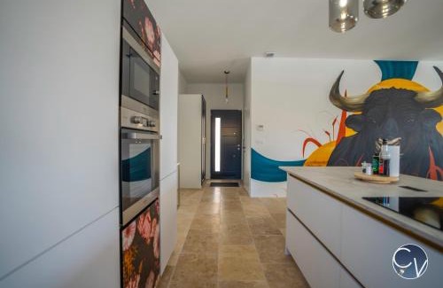 21 miles from Parc Expo Nîmes in Saint-Quentin-la-Poterie, Villa moderne tout confort-Jacuzzi-Piscine provides accommodations with access to a hot tub, spa facilities, and open-air bath. This property offers access to a terrace, free private parking, and free Wifi. Avignon TGV Train Station is 26 miles away and Pont du Gard is 12 miles from the villa. The air-conditioned villa consists of 4 bedrooms, a living room, a fully equipped kitchen with a dishwasher and a coffee machine, and 3 bathrooms with a hot tub and a hair dryer. Towels and bed linen are provided in the villa. The property has an outdoor dining area. Guests can enjoy the outdoor swimming pool and garden at the villa. Avignon Central Station is 25 miles from Villa moderne tout confort-Jacuzzi-Piscine, while Papal Palace is 25 miles away. Nimes-Ales-Camargue-Cevennes Airport is 25 miles from the property.
