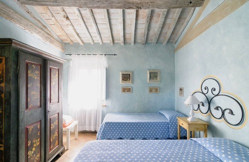 With beautiful antiques and collectors' pieces she has created a truly charming atmosphere, by using the traditional Tuscan colors, given the rooms a very warm touch Underlined by precious textiles - retaining, However, the character of this formerly agricultural complex.