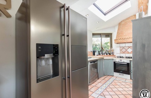 An invitation to travel and to meet up with family or friends, that's what you'll find when you book at Villa Musha. A former flight attendant, Corinne, the owner, offers you a dream vacation in the Toulouse metropolis. The huge bay windows on the ground floor will offer you extraordinary brightness, and the many bedrooms, a well-deserved rest. The many kitchen facilities (fondue, raclette machine, crepe maker, waffle maker, etc.) will allow you to share unforgettable meals, in the shade, on the outdoor terrace, or in the large dining room. Each room has been beautifully decorated by Corinne, who has combined the Toulouse character of exposed bricks with her travel memories. The pleasure garden is organized for many games and well-deserved moments of relaxation, by the pool or in the hammock. In the countryside but close to the Ville Rose, capital of the South-West, you will have plenty to do: the Balma-Gramont metro station is 5km away (the 102 bus line allows you to go there without your car!), to reach Toulouse or do your shopping; the Calicéo fitness and wellness center is 6km away; the Cité de l'Espace is 7km away; the Halle de la Machine and the Envol des Pionniers are 12km away; the Natura Game leisure park is also 12km away; the forest and golf course of Buzet-sur-Tarn are 20km away. On 2 levels, this beautiful villa has 5 bedrooms, 5 double beds, 2 single beds, 2 shower rooms, a bathroom and 3 toilets: - Entrance, living room, kitchen, dining room, 3 bedrooms (1 double bed 140 * 190cm) (1 double bed 140 * 190cm) (1 double bed 140 * 190cm and 1 single bed 90 * 190cm), bathroom and separate toilet. - 2 bedrooms (1 double bed 160 * 200cm, dressing room, TV, bathroom and private toilet) (1 double bed 140 * 190cm, 1 single bed 90 * 190cm, shower room). The owner lives in the adjoining part of the house.