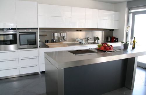 The ground floor also includes one bathroom (with a modern Italian shower) and a bedroom for two people.