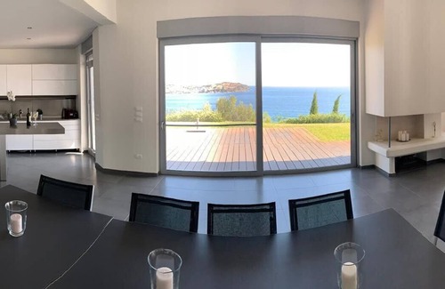 Modern villa located on the Greek island of Evia which is only a 2 hour drive away from Athens. You can either drive directly from Athens using the Chalkis bridge or drive part of the way and then take a ferry from Oropos to Eretria.