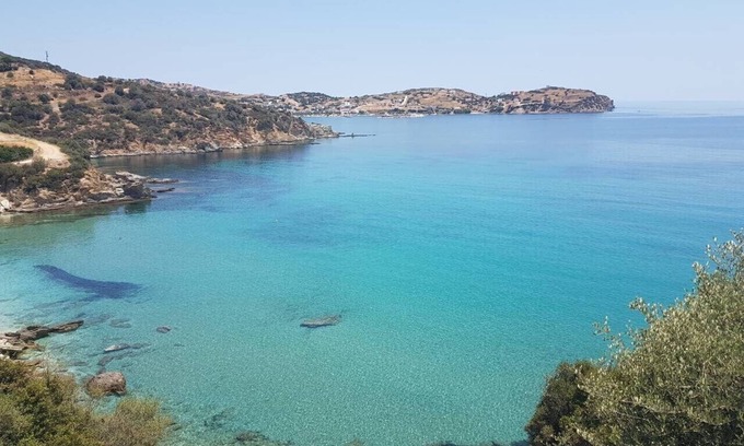House overlooking the Aegean Sea 50 m from a splendid beach next to an authentic fishing village, ideal for families seeking calm, the sea, the beach and authenticity.