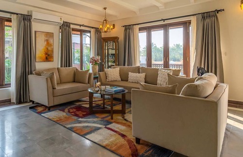 Situated in Aldona, Goa, The Villa Nea comfortably hosts families and friends at 3,500 sq. ft of living space, with a spacious patio and private pool.