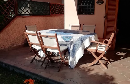 Composed of eat-in kitchen that opens onto a covered terrace, lounge/living room, with direct exit onto the veranda and garden furnished with tables and chairs.