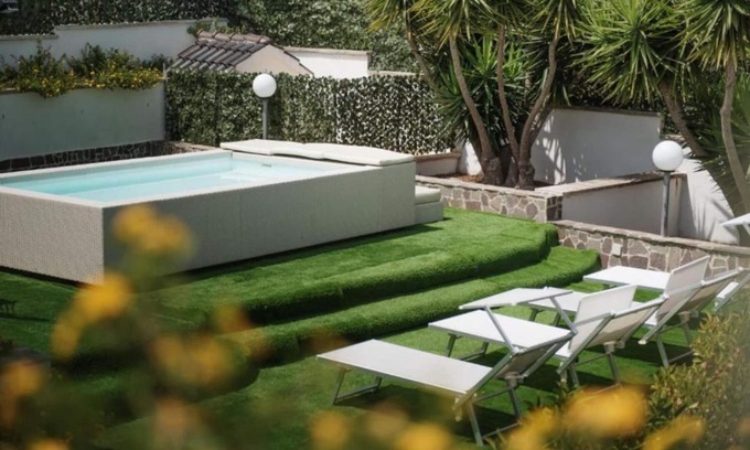 In different points of the property you will find sunbeds, chairs or tables to enjoy the splendid views of the sea and the Mediterranean scrub (carob trees, olive trees, pines), accompanied by the sound of cicadas. To cool off, all you need is a dip in the elegant swimming pool, small but enough for a few laps or to relax in company.
