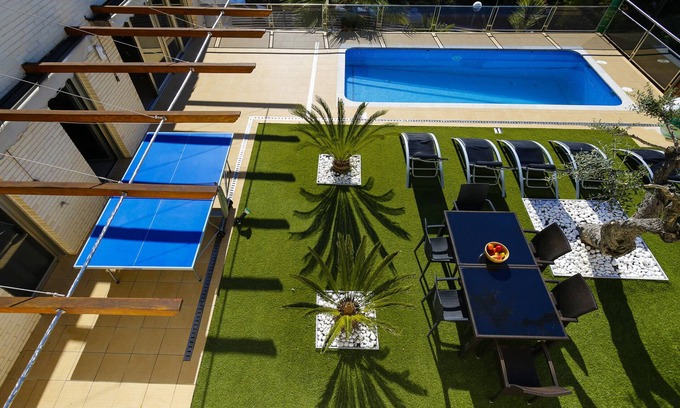 Enjoy unforgettable holidays at Villa Nina with a private swimming pool, a magnificent holiday home in Tarragona! With 5 bedrooms and capacity for 12 people, this villa has all the amenities you need for a perfect stay. Additionally, it features a private swimming pool and free WIFI for your enjoyment and connectivity.Villa Nina is a high-end house with a beautiful garden and a private swimming pool. Every detail has been carefully selected, creating an elegant and welcoming atmosphere.- Pool Hibernation: Not available from 1 November to 30 April. Check availability.Located in La Mora, a charming locality just 5 minutes from the centre of Tarragona, and only 500 metres from the beach.The villa is distributed over 4 floors. On the ground floor, there is a spacious garage with capacity for 2 cars. The first floor has 1 double bedroom with a small terrace.The second floor, which is the main one, has a spacious dining room with a fireplace and direct access to the kitchen and the terrace. The terrace has an outdoor dining area with awnings, a barbecue, and a ping pong table. The pool, surrounded by lawn, has sun loungers and garden furniture so you can relax and enjoy the sun. On this same floor, there is a suite-type bedroom with direct access to the terrace. The bathroom of this suite has a shower.The upper floor consists of 3 double bedrooms. One of them is a suite with a full bathroom with a bathtub, while the other 2 bedrooms have 2 single beds each. The other bathroom on this floor has a hydromassage cabin. All bedrooms have access to a terrace with views of the sea, the garden and the swimming pool.The villa offers free WiFi and air conditioning in all rooms to ensure your comfort throughout your stay.IMPORTANT INFORMATION TO TAKE INTO ACCOUNTTourist tax not included in the price. Payment will be requested prior to arrival.A deposit of €1,000 with a credit card will also be required. Refundable 7 days after departure.Mandatory to complete online check-in before arrival in order to collect the accommodation keys.Internet/Wifi: It is only available if expressly indicated in the accommodation description. Internet connection via WIFI is a service that the company offers free of charge for actions that consume a not very high amount of data. This service has not been taken into account when setting the reservation price, so it will not be possible to claim due to speed problems or lack of connection.The images in this advertisement are not contractual and may be subject to variations with the current decoration of the property. Although we strive to maintain up-to-date and accurate information, the decoration and furniture of the property may have changed since the photographs were taken. These changes are made in order to improve and update the property, ensuring at all times that the configuration relating to capacities and structural specifications of the property is effectively maintained.On Planet Costa Dorada, we are committed to providing high-quality services typical of the hotel industry:Reception and customer service 24/7.Bed and bath linen change on a weekly basis during your stay.Accommodation cleaning on a weekly basis during your stay.Luggage storage. (Maximum of 2 suitcases per guest, with a maximum weight of 23 kilos and 158 linear cm per suitcase)Laundry service.Catering and restaurant services.Tourist services: restaurant bookings, ticket sales...The client will expressly authorise entry into the accommodation in their presence and in their agreed absence for the personnel required for cleaning and changing linen.