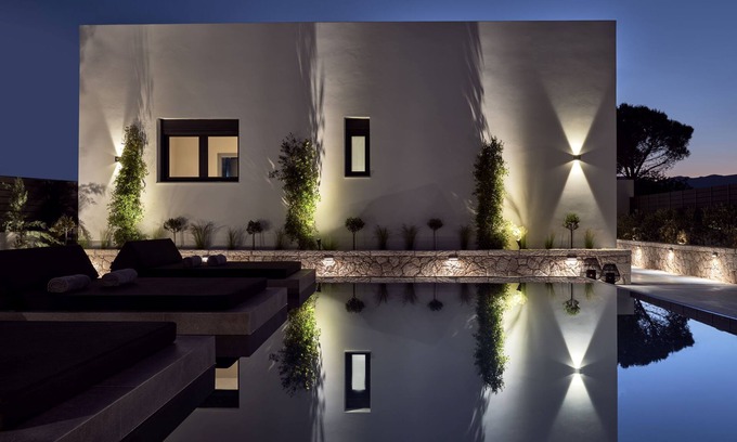 Noema Villa – a newly built, luxurious holiday home with exquisite aesthetics and unparalleled style, with a vast private area featuring an impressive swimming pool, in the quiet settlement of Sarakinado, Zakynthos island.
