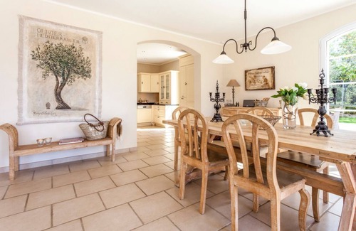 Open up the pretty shuttered French windows and be greeted with beautiful views of hills and woodland. The spacious living and dining room opens up to the large terrace with its outdoor lounge and Mediterranean gardens. Enjoy leisurely meals as kids play on the trampoline and swing or let their imaginations run wild by the little treehouse. The inviting swimming pool is also perfect for splashing around or simply soak up the summer sun on one of the poolside loungers, surrounded by olive trees and towering pines.