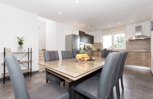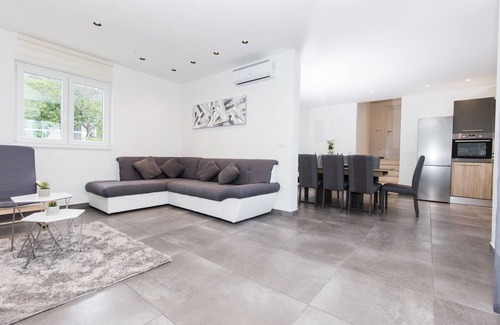 Villa Olive Gardens is build in July 2018 and represents a piece of modern luxury on the Dalmatian coast. Villa is situated in a residential area, quiet and peaceful, with sea views. Surrounded by trees perched on a hillside with spectacular views of the Mediterranean sea. With large terrace, parking space, olive gardens, BBQ with covered outside seating area and inviting swimming pool it has all the facilities to let you enjoy your holiday with family.