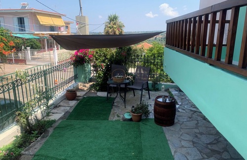 two level villa maisonette 500 meters from the famous Skafidia beach, modern furniture, décor, three bedrooms, two bathrooms with large bathtub and shower, fireplace, air conditioning, great sea and mountain views, five kilometers from port Olympia.