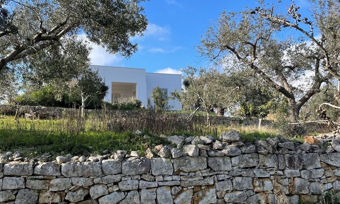 - Villa on an elevated terraced olive grove with views over the Valley of Itria.