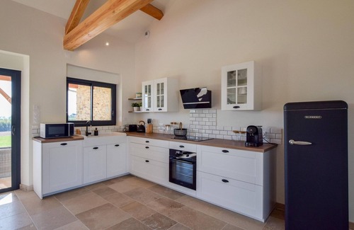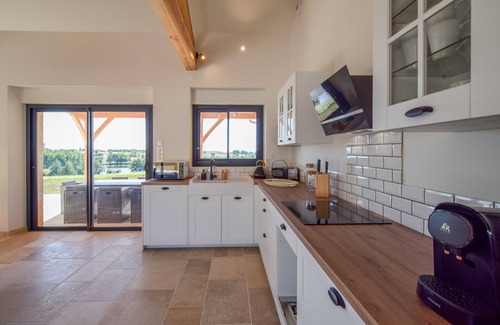 Set within the prestigious Domaine d'Essendiéras in Saint-Médard-d'Excideuil, this modern villa offers a serene escape for up to 6 guests. Surrounded by 400 hectares of landscaped grounds, the estate features two castles and several stylish holiday villas. Indoors, guests enjoy elegant furnishings and a heated private swimming pool, while the fourth bedroom is best suited for small children. The estate provides a wealth of activities: stroll through manicured gardens, play tennis, enjoy the 9-hole golf course, or relax poolside. Located on one of the highest hills in the Dordogne, the site boasts a rich history and breathtaking views. Nearby, guests can explore caves, go rafting, or ride horseback through the scenic countryside. Just 35 km from Périgueux, the capital of Dordogne, this villa combines luxury, nature, and culture.