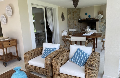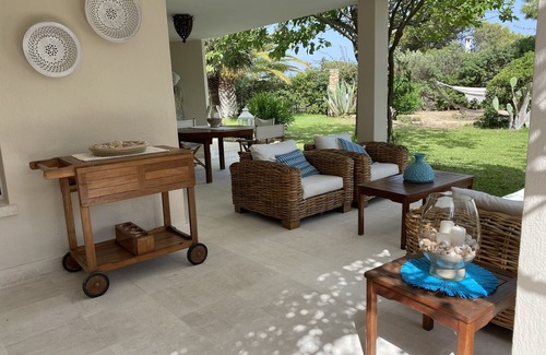 Detached villa with 1000 square meters of garden, furnished with care and style, with four bedrooms, two of which with independent entrance and bathroom. The villa is ideal for families and couples who wish to have some moments of privacy. The centerpiece of the house is an L-shaped patio, very large and tastefully decorated. In the patio you can eat (table and 8 chairs in teak), chatting (living in banana tree braided with white cushions), you can read in peace.