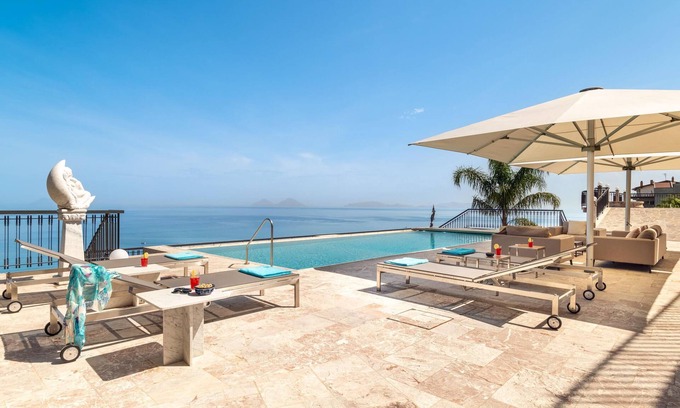Best-rates for the Capo d'Orlando villa starts from $1,144 per night with includes View, Ocean View, Wellness Facilities, Fireplace/Heating, Internet, Kitchen, Laundry, Pool, Oceanfront, Security/Safety, Bedding/Linens, Barbecue/Outdoor Cooking, Air Conditioner, Parking, TV, Balcony/Terrace, Private Pool, Child Friendly with all other amenities. Perfect for Weddings is committed to ensuring every guest experiences a comfortable and extraordinary stay, whether planning a romantic getaway, a honeymoon, a pet-friendly stay, or celebrating with the entire wedding party.