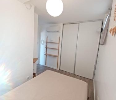 - Appart 4 pers piscine chauffée, wifi, 2 chambres, clim, 7 min mer, 1 min rivière