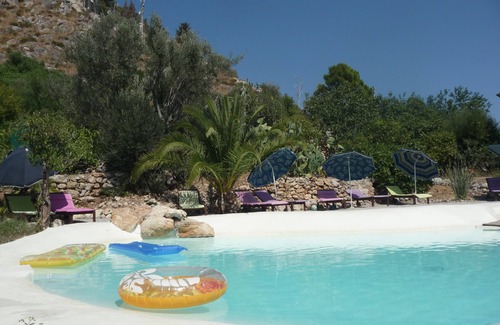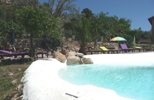 Villa Paladino Solunto is a small and amazing complex of 5 lovely bright, cozy and full-equipped suites (3 three-room suites for 4 - 5 people and 2 two-room suites for 2 - 4 people), immersed in a dreaming and amazing atmosphere, between history and mythe,just at the gates of Palermo. It has exceptional charm and prestige by the unique characteristics between the gulfs of Palermo and Cefalù. It smartly stands on a lush hill, close to the Natural Reserve of Monte Catalfano and the Archeological Park of Solunto,the famous Phoenician and Greek - Roman city. Guided tours on foot of Monte Catalfano can be arranged. Along the coast, you can visit the Archaeological underwater Park of the Rock of the Ant. Boat trips with skipper in the clear waters around the Scoglio della Formica (the Rock of the Ant), home of dolphins, up to the Aeolian Islands and fishing can be arranged in summer. The closest sand beach is only met 800 far from the Villa. You can look at the Gulf of Palermo and Monte Pellegrino too ('The most beautiful promontory of the world', said Goethe, the well known German poet who came in Sicily in 19th century) from the windows of your bedrooms.The view of the sea embraces from Palermo to Cefalù until the high chain of Nebrodi and that over mountains reaches from Mount Pellegrino (Palermo) to the inner mountains of Sicily, the magnificent tops of Madonie (alt. m 2000), looking at the hills, the rocky promontories and the green valleys of Bagheria and Santa Flavia too. On these panoramic luxuriant hills of Bagheria you can admire a lot of beautiful eighteenth - century villas built by the best Sicilian nobility. Villa Paladino solunto is a fascinating and enchanting site,a very peaceful place where adults and children can enjoy and spend unforgettable holidays thanks to the gorgeous setting with an incredible pool similar to a natural lake in the middle of a large Mediterranean garden. Ii is also a good starting point with easy access to motorway and manageable driving time to majority of attractions. 200 meters away you may visit the touristic village of Santa Flavia and the fishing villages of Porticello and S.Elia, where you can taste delicious Sicilian dishes. Approximately 1 Km. after S.Elia, driving along the quite panoramic coastal road, that flows around the Natural Reserve of Monte Catalfano, you’ll get the promontory of Mongerbino and the seafaring village of Aspra and with its breath-taking views on the Gulf of Palermo and Monte Pellegrino. It is a strategic point to easily go sightseeing Palermo (Km.10, 30 minutes by car and 20 by train), the well known beach resort of Mondello and the town of Monreale, with the most beautiful and important Cathedral in the world, the famous medieval town of Cefalù, with its fantastic beach and the Arab-Norman Cathedral, the enchanting Castle of Caccamo, the well-known remains of Agrigento, the Museum of Mozia, the nice and little town of Erice, the Natural Reserve of Zingaro, the National Natural Madonie Park and many other places of great tourist interest.It 's possible to go in less than an hour from the sea to the mountain, taking part in sightseeing, excursions in the great Madonie National Park (alt m. 2000) a paradise of rare plants and protected animal species. If you haven't a car, you can easily go sightseeing Palermo, Cefalù, and many other places thanks to the nearest train Station of Santa Flavia (0,200 KM.) or the Bus Station of Bagheria: pullmans and trains leave each hour and are very cheap and convenient means of transport. The main body of Villa Paladino Solunto,well marked by the imposing tower embellishing it and erected in the beginning of the last century,is the meeting's centre of the International Institute for Advanced Studies of Space Representation Sciences, which is intended at the activities which are performed