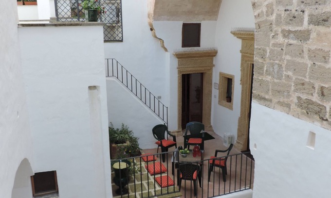 Il Patio and Le Terrazze are two independent units of Villa Palazzo del Diavolo (in Parabita, Lecce), a prestigious comfortable building with baroque XVII century décor including large windows framed with sculptured local stone, situated in the middle of Parabita’s historic town center.