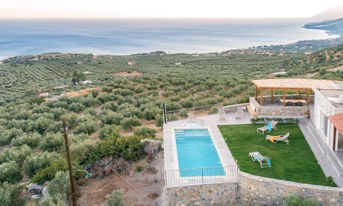 Offering a garden, Villa Panthea features accommodations in Keratokampos. This property offers a private pool, free Wifi, and free private parking. Outdoor seating is also available at the villa. Featuring a terrace with sea views, this villa also comes with a flat-screen TV, a well-equipped kitchen with a dishwasher, an oven, and a fridge, as well as 1 bathroom with a bath and a hair dryer. There's also a seating area and a fireplace. Keratokampos Beach is a 9-minute walk from Villa Panthea, while Armenopetra Beach is 1.3 miles from the property. The nearest airport is Heraklion International Airport, 37 miles from the accommodation.