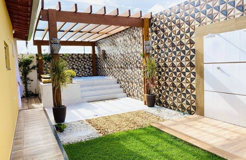 A villa é esplêndida, com uma piscina enorme, iluminada, com mini cascata, cozinha gourmet, Bar, churrasqueira, banheira de hidromassagem, varandas, lounge chair, fire pit e muito mais. Somente a 7 minutos de carro da praia. Ideal para confraternização de famílias e casais de amigos, retreat. Um lugar delicioso planejado para receber você, sua família e seus amigos com conforto e privacidade.