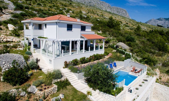 The modern villa was built in 2014 in Duce Rogac, Dalmatia and is ideal for longer and relaxing stays. DuceRogac is centrally located in Dalmatia and is therefore a very good starting point to get to know this region. A visit to the nearest town of Omis, which is only 2.5 km away, offers additional content and entertainment for all ages. Visit the pirate fortress in Omis, treat yourself to a rafting adventure on the Cetina River, hike in breathtaking surroundings, take advantage of the climbing opportunities, go diving, fish your dinner or relax on the beautiful sandy beaches which grace the coast from Omis to Duce Rogac.