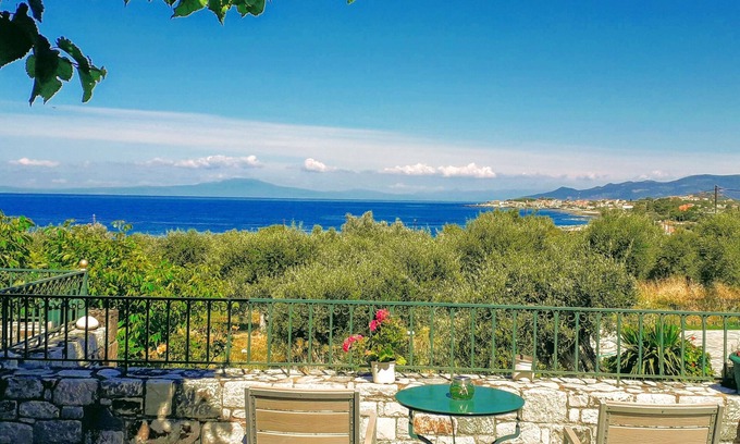 Pefnos Apartment is set in a traditional stone villa set in it's own beautiful olive grove and lovely gardens on the outskirts of the picturesque fishing village of Agios Dimitrios, about 5 km south of Stoupa. This lovely villa with two apartments, offers absolute peace and quiet and is the ideal starting point for lots of holiday activities. The large terraces on all sides of the villa invite you to relax and sunbathe. The two apartments are built slightly offset and have separate entrances, so that our guests can enjoy complete privacy. The olive grove and gardens are lovely and the views of the sea are unparalleled. There is plenty of space for parking. We also offer free bikes for anyone wishing to explore.